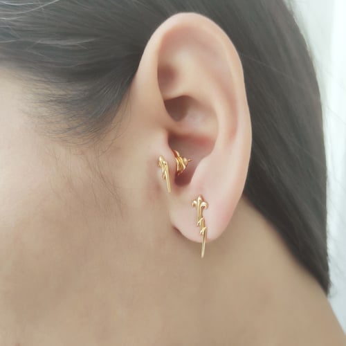 ชื่อชิ้นงาน: Zeus's Thunderbolt earring Stud Oversized - 24 Karat Gold
