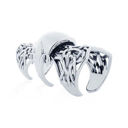 This series emphasizes grandeur, showcasing the brilliant shine of specially polished sterling silver armor more vividly than any other collection. Inspired by the form of sacred armor, it incorporates the signature Fierce-de-lis motif, entwined like vines to reinforce the forbidden metal born from the Armageddon meteor.