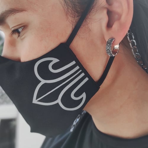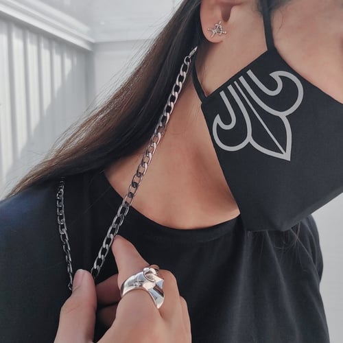 ake ake The Fierce Mask 'ZEUS' Edition หน้ากากผ้าปิดจมูกสองชั้นสีขาวสกรีนสีเมทัลลิกสีทองสะท้อนแสง พร้อมโซ่โลหะทองคล้องแมสแบบร็อกเกอร์ เฟียซ ลิมิเตด